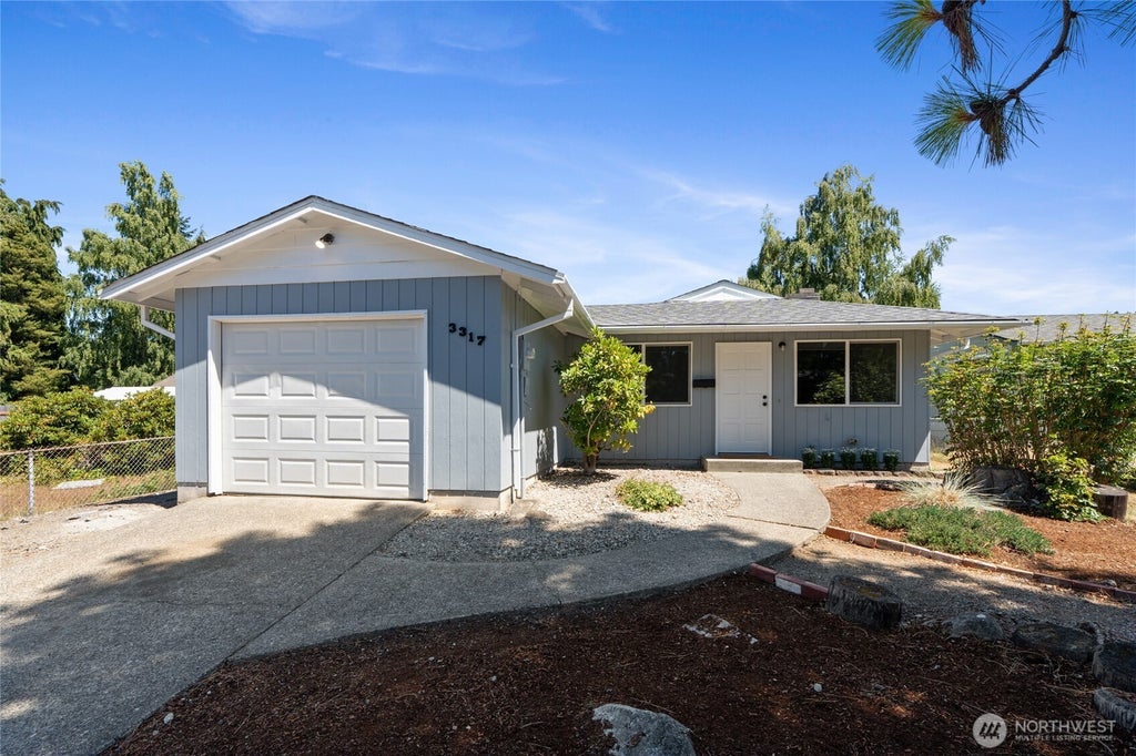 Tidy 3 bedroom & 1 1/2 bath rambler in highly desired North Tacoma. Freshly refinished hardwoods in the Living Room & all 3 Bedrooms, and a full interior & exterior paint job. New vinyl windows installed throughout allow plenty of natural light & the HP Mini Split keeps you comfy year round. You can also enjoy the wood burning fireplace in the winter. Cute Eat-In Kitchen along with the Dining Room are great for entertaining. 1/2 Bathroom off of the Laundry/Mud Room, which leads to the level fully fenced backyard ready for your gardening enjoyment. 3 Bedrooms & a Full Bathroom finish off the inside. 1 car attached Garage and plenty of off street parking. Close to all services, entertainment, dining and parks & under 10 min drive to Hwy 16.