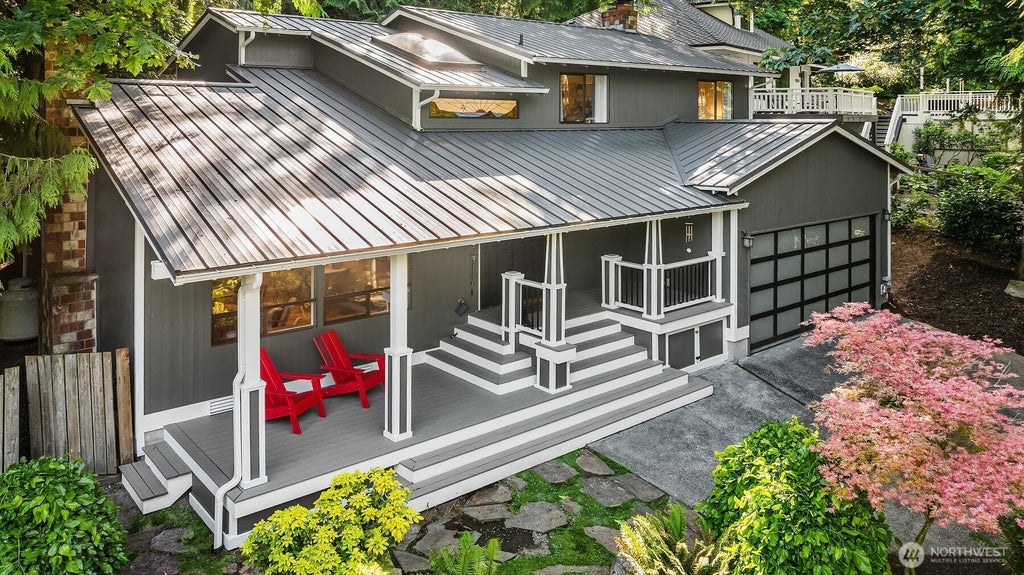 Manzanita Living w partial waterview. 3 Bed 2.25 Bath. 2 Car Attached Garage. Super Quiet Olympic Terrace neighborhood. Main floor w Kitchen opening onto Private wooden deck & back patio. Bonus Fireplace in Primary. Two Main Story Wood Fireplaces. Dining room, Kitchen, and family Room backlit with Natural light. Front yard terraced for easy gardening and maintenance. Water Access via walk a few houses down,also kayak storage. Seller Inspection from Punchlist and 17 Sellers Disclosure available by request. Hot Tub Winterized but unused. Updated Kitchen w tons of natural light. Crawl space w new insulation and vapor barrier. Extra room upstairs is office. Wired for Electric Car. Whole House Forced Air Heating system in place. Metal Roof 2018