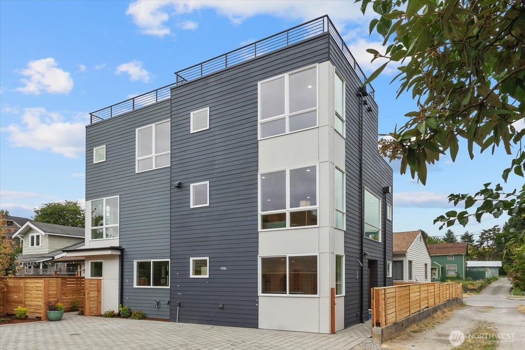 Enjoy stunning views of Green Lake from your private rooftop retreat and light-filled owner's suite. The open concept living space is wrapped in oversized windows, creating a bright and welcoming atmosphere perfect for entertaining or relaxing. The chef-inspired kitchen showcases sleek quartz countertops, a designer tile backsplash, and premium stainless steel appliances. Upstairs, the grand primary suite impresses with a spa-worthy bath and a custom walk-in closet. A spacious second bedroom offers flexibility for guests, work, or play. Whether you're craving a scenic walk around Green Lake or exploring the shops and restaurants of nearby Phinney Ridge, this location puts you in the center of it all. Dedicated off-street parking included.