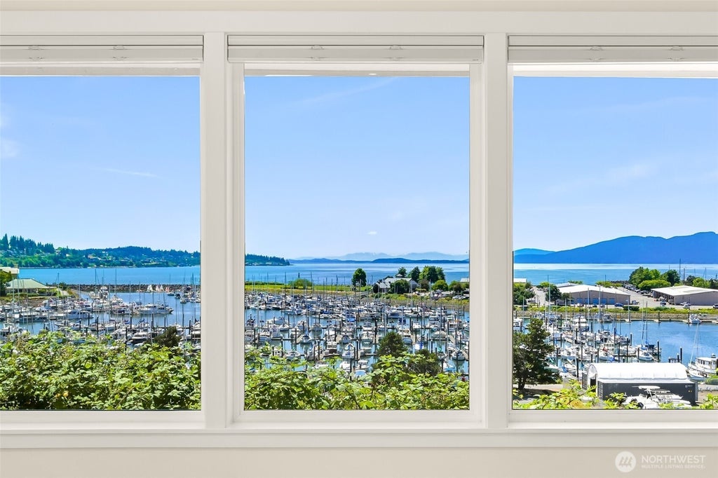 Rare, newer, front row Eldridge Avenue home, primely situated above Bellingham harbor in the historical Columbia neighborhood. This 2,000+ square foot home was custom built in 2004, is flooded with South natural light and lives like a condo while providing unmatched expansive bay, island & city views. Features include an open great room floorplan with a large living area with vaulted ceilings opening to a gourmet kitchen with new appliances, 2 primary suites both with bathrooms and walk in closets, plus a 3rd bath, covered patio, central AC, and a 860 square foot 3 car garage. Only a short walk/bike to downtown, Squalicum Beach, and many parks and trails. Enjoy easy living with the best views Bellingham has to offer!