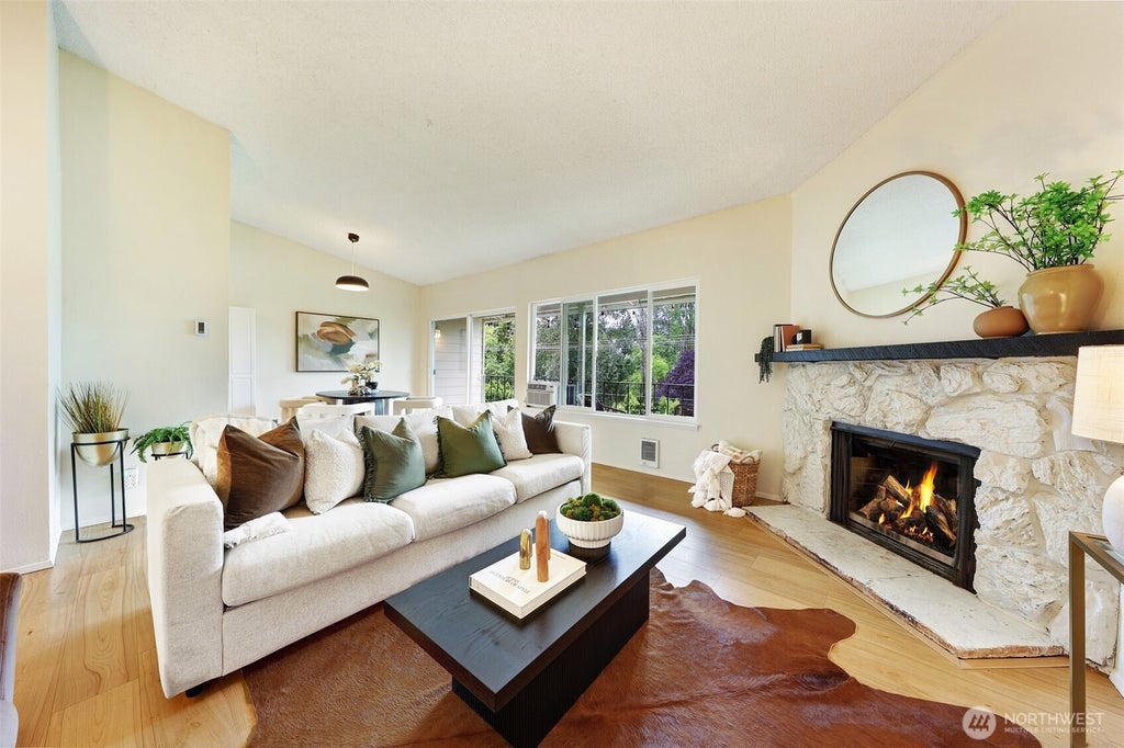 This perfectly situated, private condo will speak to the adventure loving jet-setter in you. If you love to be close to everything Seattle has to offer and yet stay tucked away in the trees, you will love this sweet home. This open layout with vaulted ceilings, fireplace, 2 large beds & roomy living room is comfortable & spacious. Relax on the balcony with your furry friend, sit by a warm fire in the winter and get to know your friendly neighbors. You can shop just blocks away at PCC or Trader Joe's to prepare your meal in the nicely laid out kitchen. Assigned carport with plenty of guest parking and private storage on the balcony. No Assessments, well run HOA, Pets OK, and rentals over 30 days are allowed.