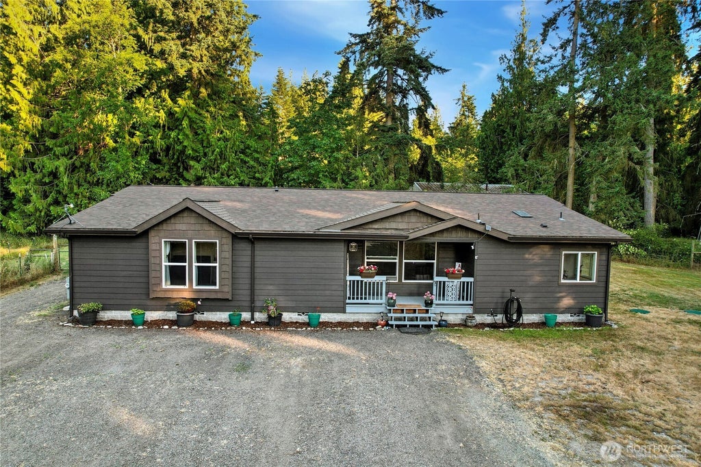 Escape to serenity in sunny Sequim! This exquisite open-concept home sits on a partially fenced, & gated lot spanning just shy of 3 acres. Designed with custom touches this newer home features SS appls, a double oven, stylish herringbone laminate flooring, & sweeping territorial views. The gourmet kitchen flows into a large walk-in pantry & convenient mudroom, while the expansive primary suite offers a double-headed shower, soaking tub, & generous WIC. Outside, enjoy ample garden space, a charming front porch, relaxing back patio, & a versatile shop w/ a loft for extra storage or perhaps transform it into an in-law suite. Perfect for those seeking space, privacy, and modern comfort in a picturesque setting. Schedule your tour today!