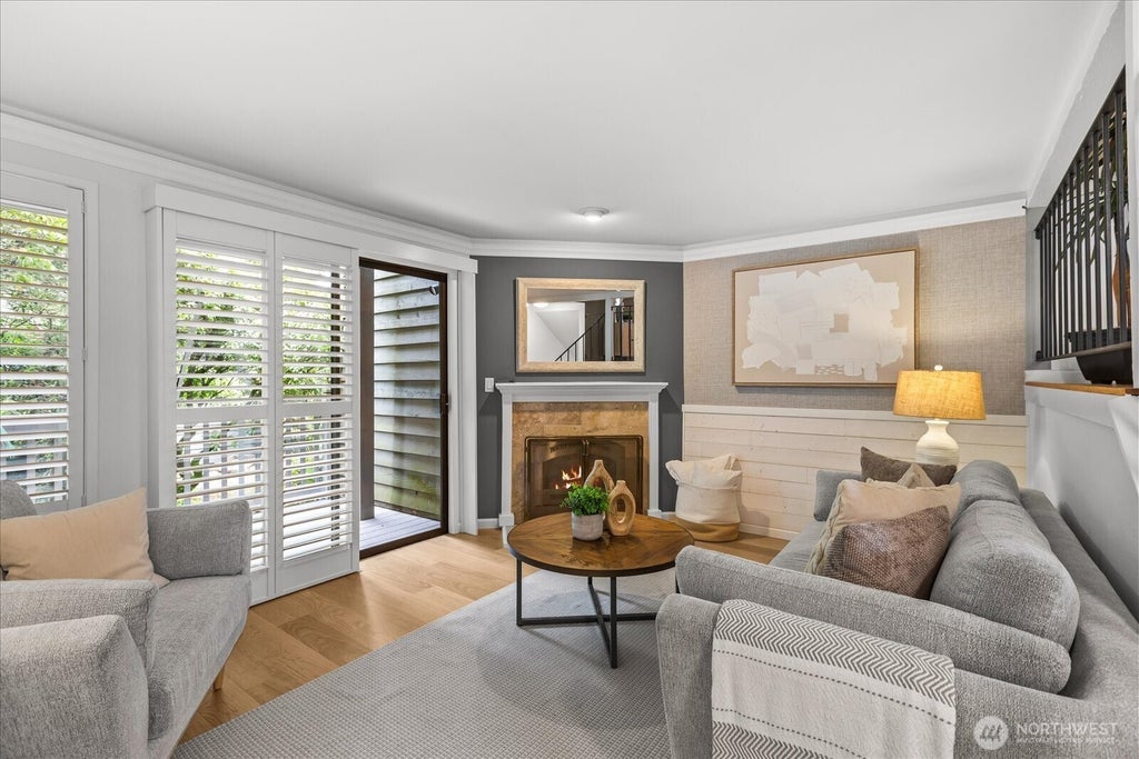 Experience refined living in this updated townhome, featuring designer accents, located in coveted Richmond Beach. 2 BR, 1.5 BA home w/multiple decks overlooking a tranquil setting. Inside you’ll find a spacious LR w/hardwoods, gas FP, seamlessly connected to an open dining area & kitchen, ideal for culinary enthusiasts, equipped w/SS appliances, Shaker cabinets, luxurious quartz slab counters add a sleek & modern touch. You’ll love the serene primary BR w/vaulted ceilings. Don’t miss the generous storage space in the attached garage, ideal for workout, home office, or? Minutes from Saltwater Park on Puget Sound for stunning sunset views over the Olympics & beachfront walks. All a short distance from the North Shoreline Light Rail station.