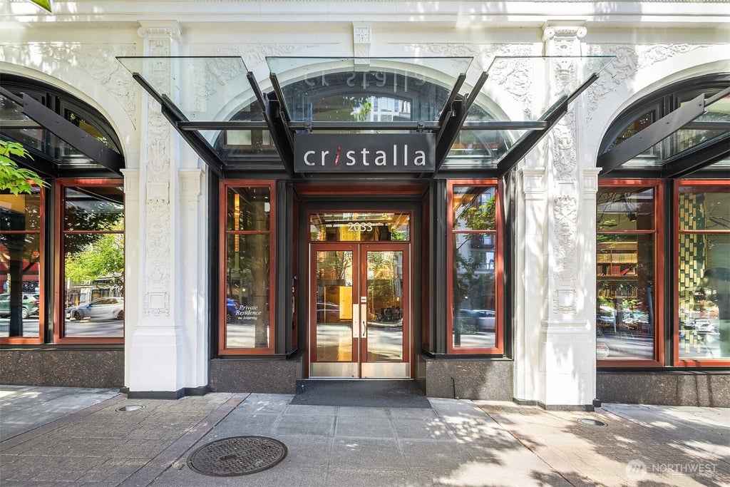 Stunning urban corner unit with views of the Space Needle and the sound. This beautifully designed home features a formal entry with art niches, dedicated home office, spacious guest suite, and luxurious primary with a 5-piece bath and walk-in closet. The open layout includes a formal dining area, expansive private balcony, and a chef’s kitchen perfect for entertaining complete with stainless appliances, gas range, granite counters, hardwood floors, gas fireplace, and custom built-ins. Floor-to-ceiling windows and soaring ceilings fill the space with natural light. CRISTALLA offers top-tier amenities: 24 hours concierge, roof top deck, fitness center, spa, theater, business center, clubroom, and guest suite.