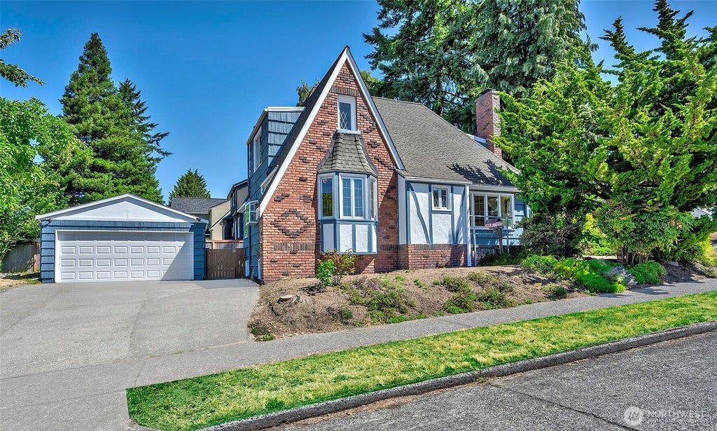 1930’s Tudor situated on a picturesque corner lot in Bryant! One of our city's most beloved neighborhoods! The light-filled living room brings a casual elegance w/gas fireplace and formal dining, hardwood floors, cove ceilings, period details and ample storage. Main level spacious bedroom & bath, upper level offers two additional bedrooms, bath, and office nook. Fully finished lower level, generous rec room, a fourth bedroom (plumbed for an additional bath), a second fireplace, and ample storage space. Peaceful outdoor spaces along with mature landscaping, detached 450 Sq Ft garage. Minutes to University of Washington, Children's Hospital, world class shopping at U Village and Light Rail within walking distance. A truly special opportunity!