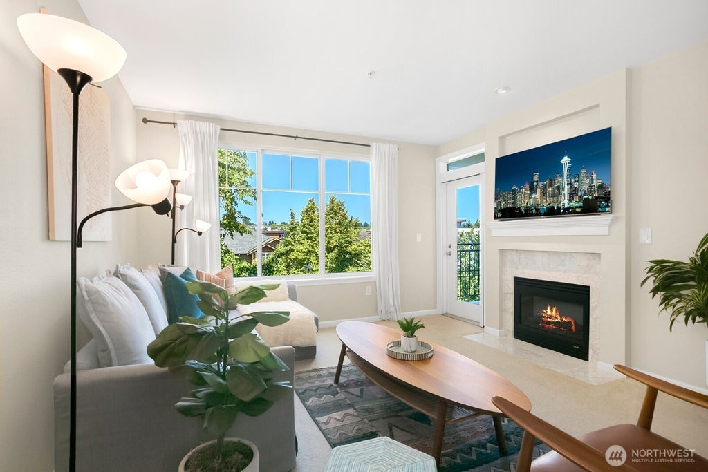 Welcome to The Ballard Condominiums! This stylish 1-bedroom, 1-bath home offers comfort and urban convenience in one of Seattle’s most walkable neighborhoods. The open living area features a cozy fireplace, private balcony, and a well-appointed kitchen with modern appliances. Soak up the sun poolside in summer, relax in the hot tub on crisp fall days, or catch stunning sunsets from the rooftop deck. Amenities include concierge service, elevator access, club room with kitchen, fitness center, and private conference space. Includes one secure garage parking spot. No rental cap! Just blocks from Ballard’s top restaurants, shops, breweries, farmers market, and transit—ideal for first-time buyers, investors, or city dwellers.