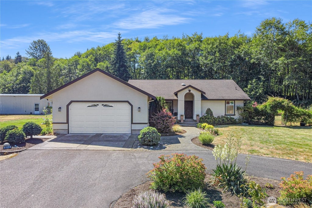 This beautifully maintained single-story home sits on 5 fully fenced acres, offering comfort, function, and the freedom of country living. Step inside to open concept living with vaulted ceilings, surround sound, central vac, and a custom primary closet. A slider off the primary suite opens to your private backyard perfect for morning coffee or evening sunsets. Enjoy mature landscaping, garden space, and fruit trees & more! 30x60 shop offers endless possibilities with an 18x28 insulated room complete with heating, A/C, and a half bath deal for guests, office, gym, or studio. Pastures are ready for animals or recreation, making this a dream for those seeking space and versatility. Located minutes from I-5, Tenino, Ground Mound, Tumwater