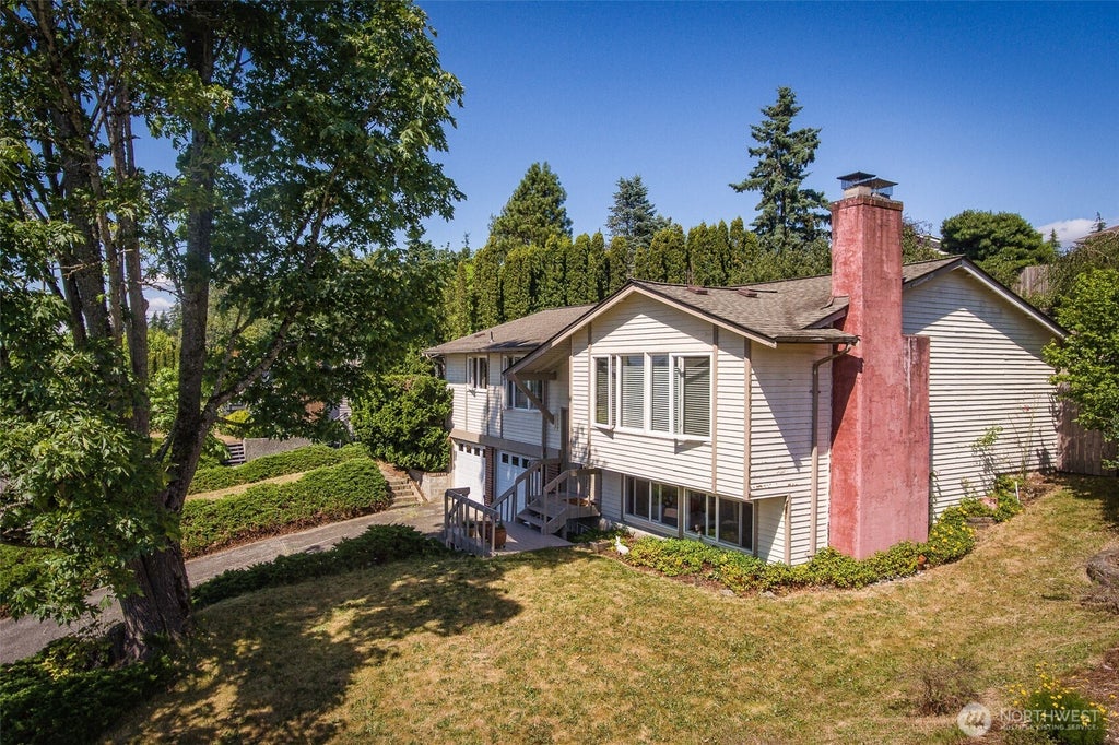 Sky-high opportunity on top the Hill! Regal Bay-view home sits in a commanding sunny position atop south Alabama Hill. Just a block's walk to 240-acre Whatcom Falls Park and its trail network to take you any direction you wish to go. Unusually open take on this time-tested split level floorplan featuring Bay and City views from the living, dining, kitchen and deck. Crafter's family room dreamspace features lots of sunny western exposure, airtight stove and built-ins for days-- a very productive space. Newer roof, furnace and appliances including laundry. Super low-traffic non-through street of fine view homes + trail access to downtown, Barkley and the Lake. It's too late for fireworks, but the sunsets are spectacular all year long...