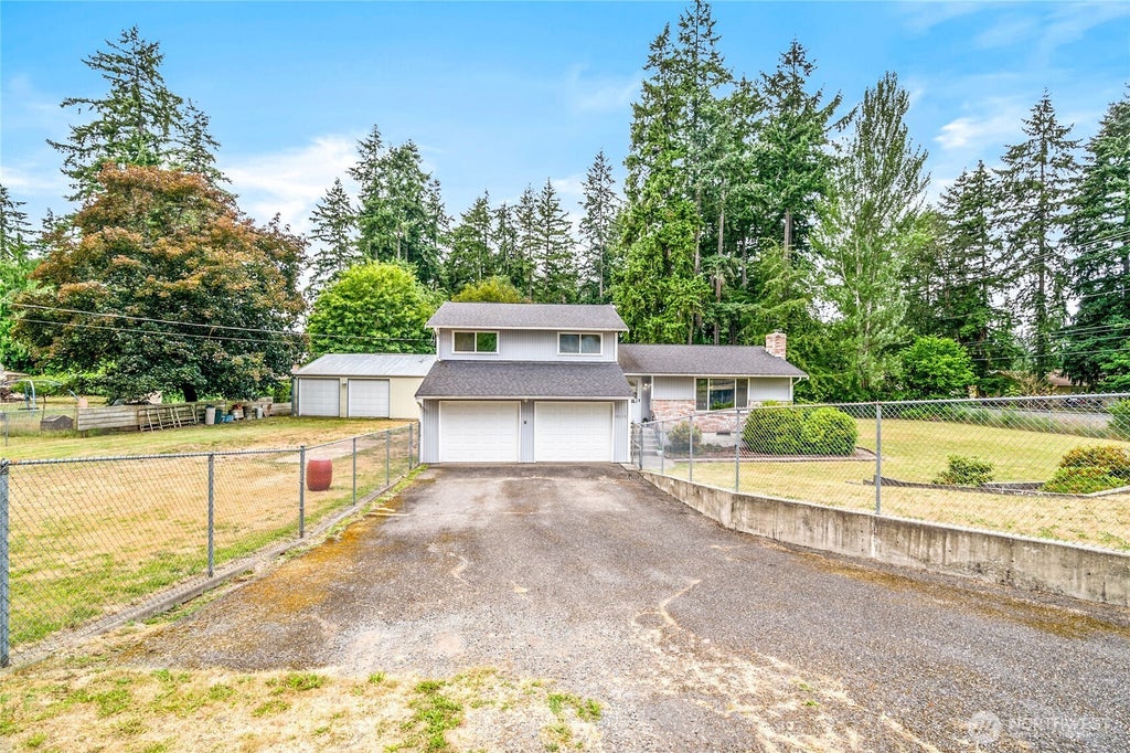 Updated Tri-level home on a fully fenced half acre lot. Attached 2 car garage, plus impressive 24' x 30' detached shop/garage w/ 220v power. Whether you want space for your business or personal hobbies, this is the property you've been looking for! Freshly painted w/ new carpet, you'll love the natural light thru out the home. Fully equipped kitchen w/ dining space that opens to the entertainment size back deck, in addition to the family room w/ a slider to the back patio. Living room features a wood stove insert for add'l heating source. Low maintenance, mature landscaping & versatility make this property a must see! Minutes to JBLM, shopping, restaurants & schools. Septic system is updated w/ a new septic tank for peace of mind.