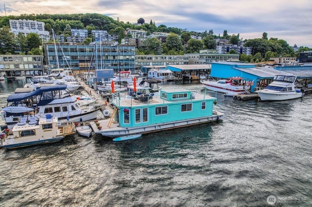 Welcome aboard 'Ginger'—your floating oasis at the End of the dock on Lake Union in the open water and NO obstructed views. This modern Seattle houseboat offers a rare lifestyle on the water with stunning views from the expansive rooftop deck. Featuring a queen bedroom, queen sleeping loft, washer/dryer, and clever storage throughout, it lives large—ideal as a full-time residence or weekend getaway. Low annual taxes and insurance make this an affordable adventure. Paddleboard, kayak, or just relax—Ginger is more than a home, it’s a lifestyle. Aluminum 55' X 15' Hull! Moorage includes liveaboard status $2,125/mo includes water, garbage, and power. Survey inspection is available for a fast closing. Financing available. No rentals.