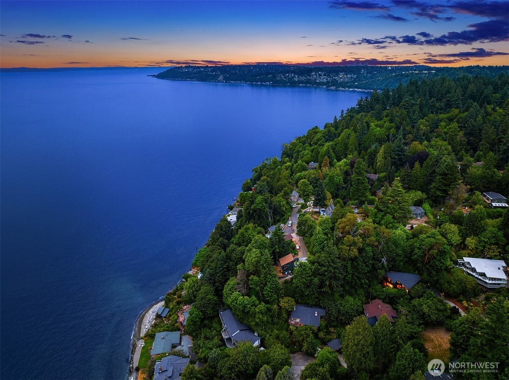 Nestled in an oasis of rare essences & plants, lies this architectural Northwest home overlooking inspiring sea & mountain vistas. Here one forgets about urban living, though so close, to enjoy the gentle rustling of the leaves, the bark of Harbor seals down at the beach & the inviting sound of the waves unrolling on the shore. Own your beach cove & adjacent lot w/15 other neighboring houses. Follow the lush driveway to reach the striking structure bathing in its natural stage & discover the light filled interior: clean lines, wood beams & layered decks. Everything speaks of craftsmanship & custom design. Open & generously sized rooms flow into one another; all w/their own decks/patios... Live, Laugh & Bathe.