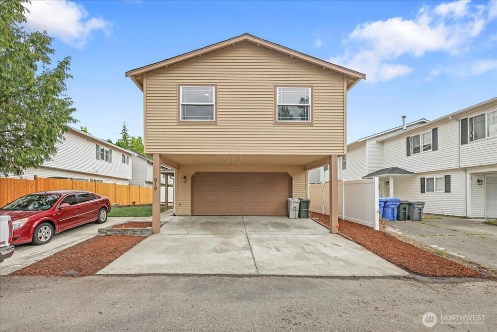 Incredible value and a must see! This well maintained 2 story home offers an oversized bonus room perfect for whatever your heart desires. The primary suite features a private full bath with dual sinks and a walk in closet. Vaulted ceilings, elegant rounded corners and stylish finishes throughout add warmth and sophistication. The open-concept living room is anchored by stunning tile surround fireplace, while the kitchen is highlighted with oak cabinetry, recessed lighting and great storage. Attached 2-car garage and an expansive side yard. All of this just blocks from the vibrant Kent Station shops, dining, entertainment, transit and more. This home blends comfort, style and every day convenience. Don't miss this rare opportunity!