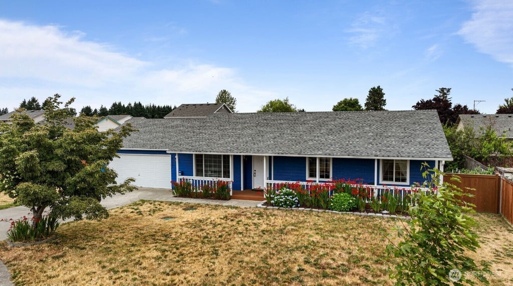 Welcome to the Heart of Yelm. This Rambler has 3 bedrooms, 2 full bathrooms and a 2 car 22ftx27ft garage, lined with HEAVY DUTY SHELVING! NEW ROOF in 2024. PERGO OUTLAST+ flooring throughout home. WHOLE HOUSE PAINTED (interior/exterior) in 2022. NEW WATER HEATER, bathroom vanities, ceiling fans and all new lighting installed interior/exterior 2022. NEW COUNTERTOPS installed and kitchen cabinets painted in 2024. The deck has been sanded and re-stained in 2022 as well. Baseboards were replaced this year too. All new STAINLESS STEEL APPLIANCES in the kitchen stay. Appliances in garage and exterior furniture do not but can be negotiated separately if interested. THIS IS A MUST SEE!!