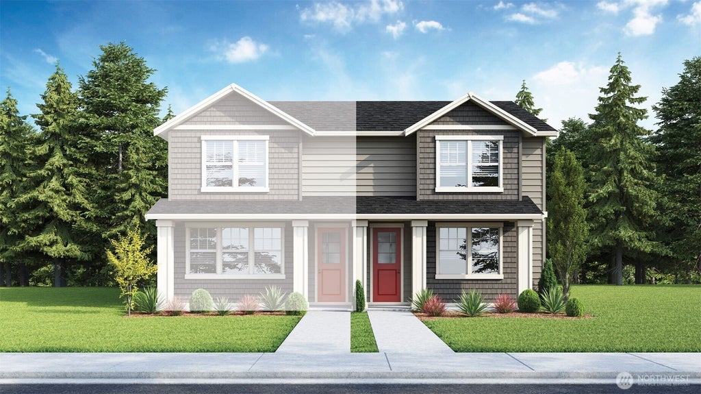 Home of the Week, Refrigerator included! Move-in ready Alder plan by D.R. Horton at Glacier Pointe in Tehaleh. This paired home lives large with an open great room, light cabinetry, slab quartz counters, full-height backsplash, and stainless-steel appliances. Upstairs, the spacious primary suite features a private bath with walk-in shower and quartz counters. Two additional bedrooms and a full bath offer separation and flexibility. Smart home features, central A/C, fully fenced yard, and 2-car garage included. Buyers must register their broker on first visit, including open houses.