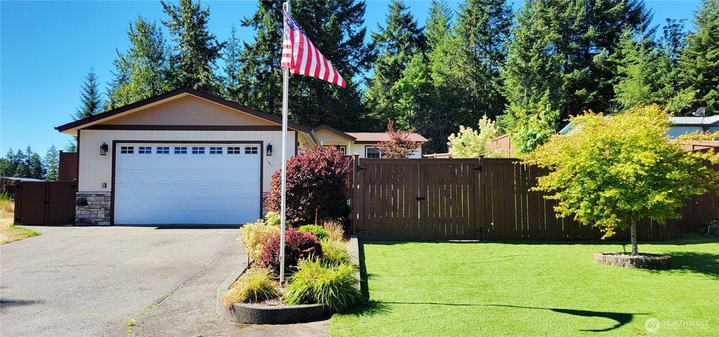 Welcome to the gorgeous home in Madrona Park. This property boasts a beautiful landscaping, stamped concrete patio, garden area with shed and fully fenced for your privacy. 20x30 garage with 9ft door. Electric gate into private parking area. Olympia just a short 15-minute drive away, & the Shelton shops & restaurants & drive-in theater just across the HWY. NO Lot Rent. Large lot w/ plenty of space for your landscaping & gardening dreams! Do not miss this one. Schedule your showing today!