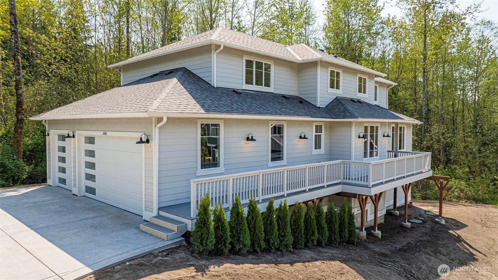 Welcome to Big Deer WEST, Homesite 2 perched like a treehouse, showcasing the surrounding nature out every window. Featuring upgraded LVP floors, a 36" gas range, EV charging, a Spa-like primary bath, large bedrooms, and timeless designer finishes. Enjoy the airy feel of high ceilings, the coziness of covered outdoor living, a dedicated home office with French doors, and built-in shelving in the spacious primary closet. Over 2 acres of woods to explore, large windows, tons of natural light, and a thoughtful design great for hosting make this a standout. Within 5 miles of downtown Snohomish, SR2, HWY 9, golf and water recreation. For the buyer desiring serenity and low maintenance living, looking to spread out, work and play, you're home!