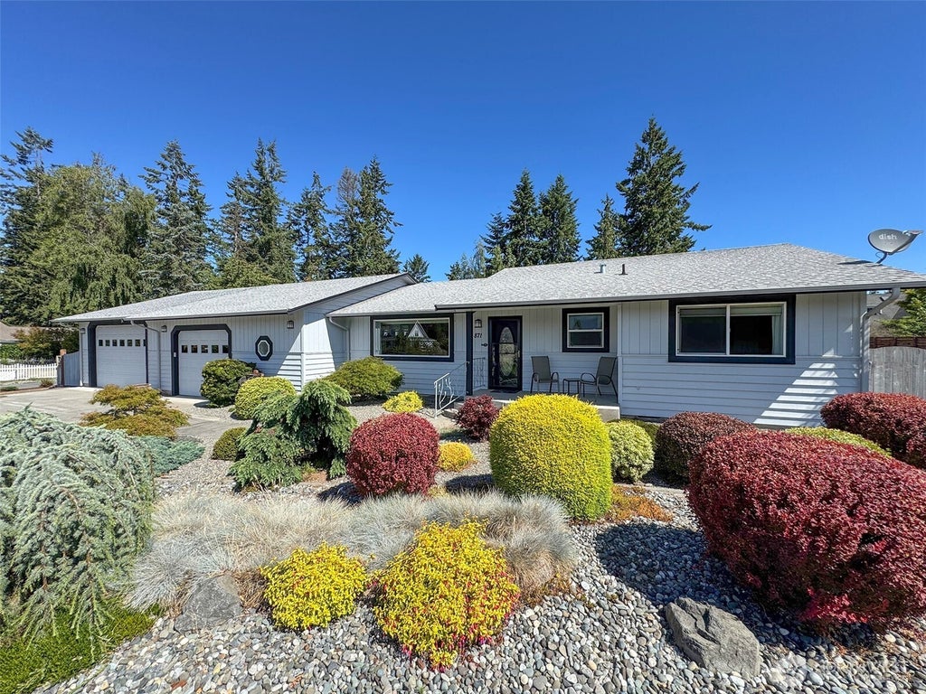 This well designed one level home is perfectly placed to enjoy partial, yet unblockable, views of the Olympic Mountains and the Sunland Golf Course's 7th hole fairway. Beautifully landscaped for low maintenance in both the front yard & in the fully fenced back yard. The oversized finished garage & HUGE adjacent shop with heat and A/C are perfect for hobbies, crafts, toys, or storage. The covered front porch welcomes you home to a vaulted ceiling living area with a cozy electric fireplace. Ample kitchen with granite countertops, a skylight, & plenty of cabinet space. Huge office/den with the primary & guest bedroom on the opposite side of the home. Enjoy sunny evenings on the back deck and take in all that Sunland & Sequim have to offer.
