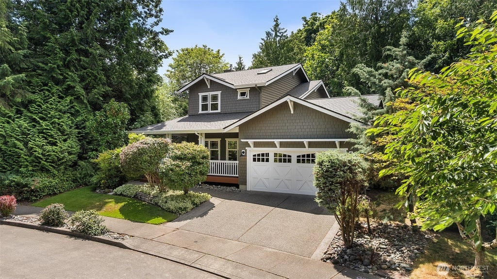 Located just a miles walk to the water, this Craftsman home is nestled on a corner lot in the coveted North Town Woods neighborhood. Surrounded by a treed buffer, this 1898sf charmer features an open kitchen, dining & family room w/ river rock surround fireplace. Main floor den has french doors and a custom murphy bed plus 3 bedrooms up, 2.5 baths and 2 car garage. Featuring brand new carpet and exterior paint along with a newer roof, SS appls and decking. Enjoy sitting on your covered front porch or entertaining around a fire in the backyard. Work in Seattle? No problem...just a quick ferry ride to the city. Enjoy all Bainbridge Island offers...quaint restaurants, boutique shopping, the arts and tons of nature! Highly rated schools nearby.