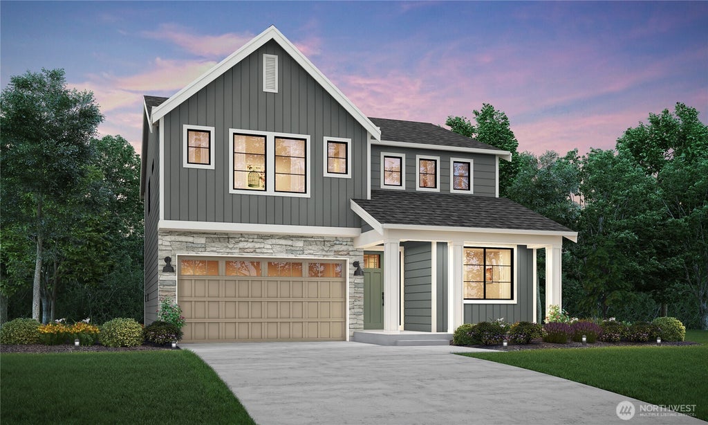This brand new floorplan is sure to quickly become a buyer favorite. The large front door leads you through the foyer into the open great room, the dining room, the kitchen, and the covered deck. The kitchen features a center island, a walk-in pantry, and ample counter space sure to suit all of your entertaining needs. A den/guest bedroom and a 3/4 bath round out the main floor. Upstairs you’ll find a luxurious primary suite with a 5-piece bath and a walk-in closet, a bonus room, two additional bedrooms, as well as another full bath, and the laundry room. Electric car charging pre-wire included!