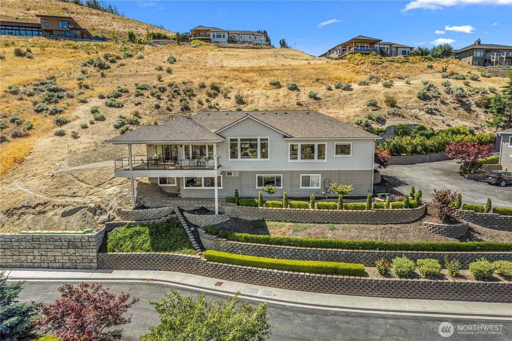 Luxurious comfort w/ SPECTACULAR unobstructed 200+ degree VIEWS of Wenatchee Valley, Mountains, Columbia River, City Lights, Sun & Moon rises. This spacious gorgeous daylight rambler boasts high end finishes, with 9/10-ft ceilings, abundant natural light framing amazing views, impressive millwork, & white oak wood floors throughout main level. The spacious Kitchen features Bagdon's cabinets, great counter space, extra-large island, butler's pantry & brand new/newer stainless appliances. With Main floor living, the primary suite includes a lavish primary bath with heated floors, extensive double vanity, & walk in tile surround shower. 2 garages with room for 4 cars plus a shop. This is a Rare find in a gated 55+ community of lovely homes.