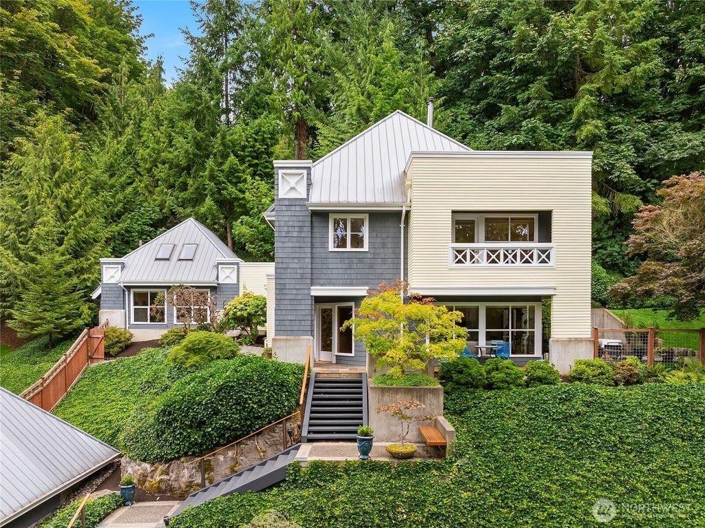 Architecturally designed private home offering serene views and exceptional natural light throughout. This 3-bedroom residence features a spacious primary suite with its own private deck, perfect for morning coffee or evening relaxation. Entertain with ease in the expansive great room and enjoy a separate, quiet home office ideal for remote work. Outdoor living shines with thoughtfully designed entertaining areas, while the fully fenced yard offers privacy and space for pets or play. A detached two-car garage provides added convenience. Whether hosting indoors or out, this home blends comfort, style, and functionality in a tranquil setting. Easy access to nearby Hidden Cove waterfront park, for launching kayaks and summertime picnics.