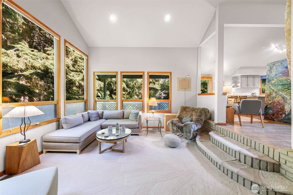 Tucked away on a peaceful cul-de-sac, this immaculate 3 bedroom, 2.5 bath home offers 1,768 sq ft of thoughtfully designed living space with a unique, light filled layout and rare privacy. The flat driveway leads to a main level primary suite featuring vaulted ceilings, a cozy fireplace, and a spacious en suite. You’ll find ceramic tile throughout the entry, kitchen, and halls, adding both style and durability. Two fireplaces and a brand new heat pump ensure year round comfort with heating and A/C. Enjoy seamless indoor/outdoor living from the expansive wraparound deck, perfect for entertaining or relaxing in nature. This home has been meticulously maintained and offers the ideal blend of comfort, tranquility, and convenience.