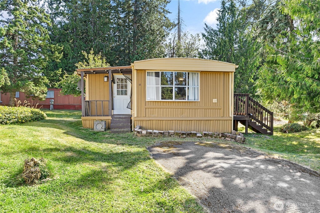 Welcome to one of Bellingham’s premier all-ages mobile home parks—just minutes from Lake Whatcom, Bloedel Donovan, and Whatcom Falls Park! This spacious 1 bed, 1 bath home (formerly 2 bed) offers 840 sq ft of open-concept living with potential to convert back. Located on a quiet cul-de-sac and set on a generous lot with fruit trees, backing up to peaceful greenery. Features include a mudroom, deck, and large yard—perfect for relaxing or gardening. W/S/G included in affordable space rent. Ready for your updates—bring your vision and make it your own! A rare opportunity in a beautifully maintained, tranquil park.