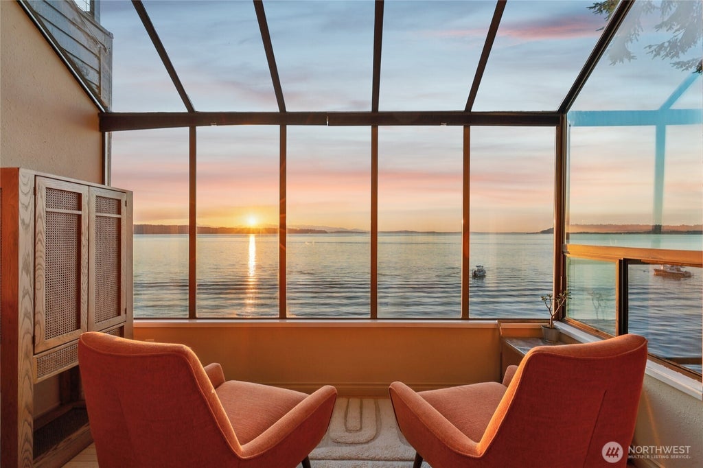 WATERFRONT DREAM in the heart of coveted Three Tree Point! This rare low-bank retreat boasts 60 feet of private Puget Sound shoreline and sweeping, unobstructed views of the water and Olympic Mountains from nearly every room. Nestled among lush greenery, this Pacific Northwest paradise offers Three levels of light-filled living and multiple decks each designed to connect seamlessly with the surrounding natural beauty. Whether you're kayaking at sunrise, watching the amazing Orcas and Eagles or enjoying sunset on the rooftop deck under a painted sky, every moment here is magical. Additional features include three off-street parking spaces, attached shop, Softub hot tub and a sense of peace that feels worlds away—yet just minutes to the city.