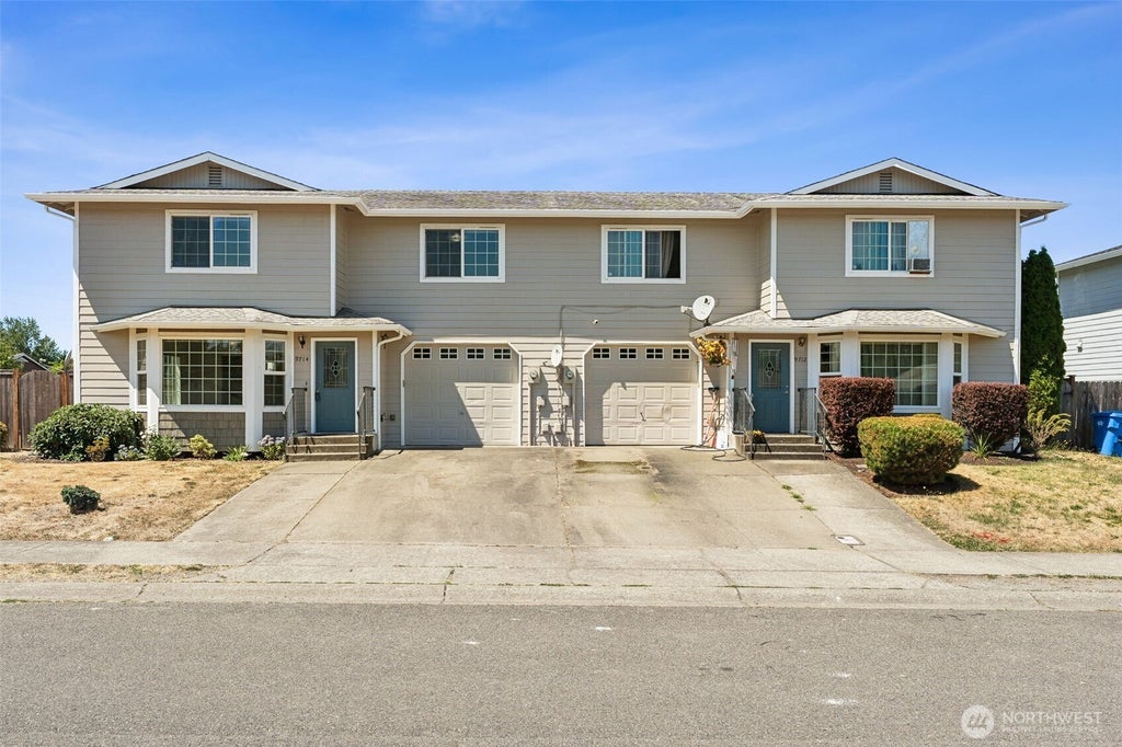 Spacious corner lot duplex with garages & fenced back yards. 9712 & 9714 16th Ave S. 9712 is currently rented month-to-month. Three bedroom and three bathroom (one full and 3/4 bath up, half bath on main) units. Great affordable house hack by living in one side and renting out the other. This is your affordable housing solution! Easy access to JBLM, freeways and amenities. Kitchen and island with plenty of counter and cupboard space opens to eating area and great room. Upstairs are 3 large bedrooms with walk-in closets including an extra large primary suite. Upstairs washer and dryer. Each unit has a one car garage with parking for addition vehicles in driveways. With a little cosmetic work, you can provide exponential return!