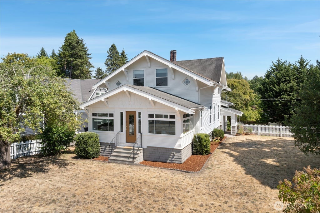 Welcome to this truly special Industrial Modern Farmhouse in a prime Des Moines location w/views of Puget Sound, Olympics & spectacular sunsets. This one-of-a-kind home has been incredibly & thoughtfully updated throughout. Gorgeous new kitchen w/quartz counters, premium range hood & custom shelving wall w/wet bar. Huge living room & sunny formal dining full of windows/natural light. Elegant new ensuite bath. Original patina hardwood floors plus new wool carpet. New paint inside & out, new electrical panel, port package windows. Bespoke entryway w/designer auxiliary spiral staircase. Walk-in closets & tons of storage space. Large basement workshop. Expansive 16,000 sf lot. Walk to all Marina District amenities. Just minutes to SeaTac & I-5.