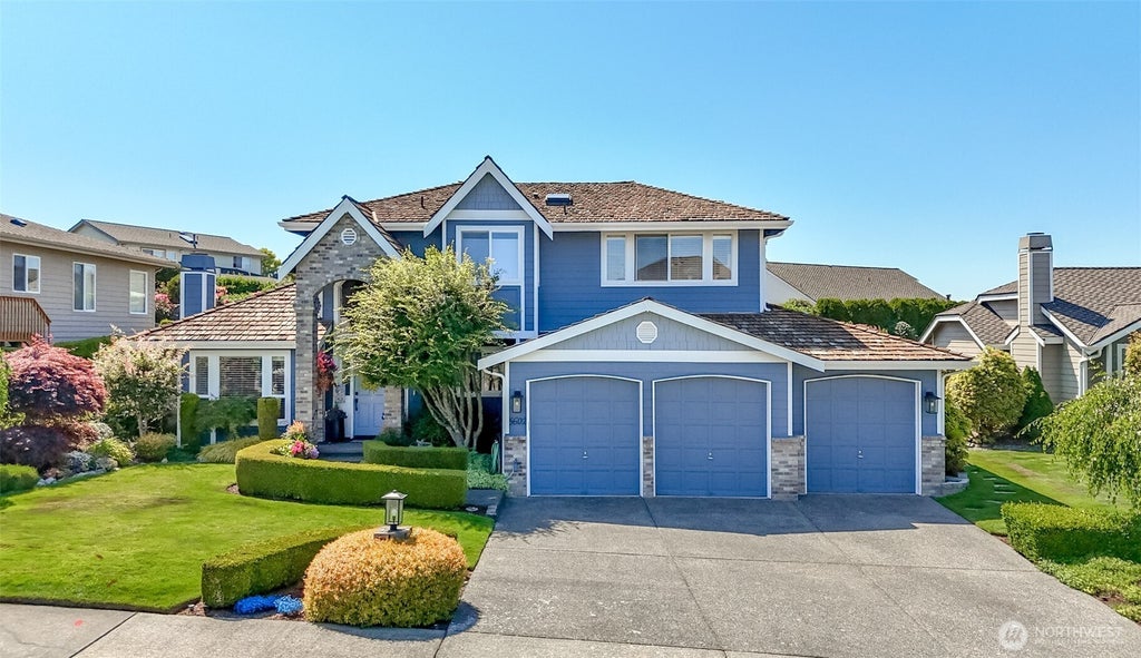Located in the coveted Pinnacle Point neighborhood, this beautifully remodeled and spacious 4-bedroom, 2.5-bath home blends luxury with stunning natural surroundings. Enjoy views of Puget Sound, Maury Island, and the Seattle skyline from multiple vantage points throughout the home. The gourmet kitchen, remodeled in 2020, features sleek KitchenAid appliances, double ovens, an induction range, steamer, and warming drawer. The layout effortlessly flows into the dining and living areas, perfect for entertaining. The primary suite, remodeled in 2025, offers a serene, modern retreat. Add't highlights include fresh exterior paint, a 3-car garage, ample storage, and a meticulously maintained & landscaped yard. Turn-key ready in a premier community!
