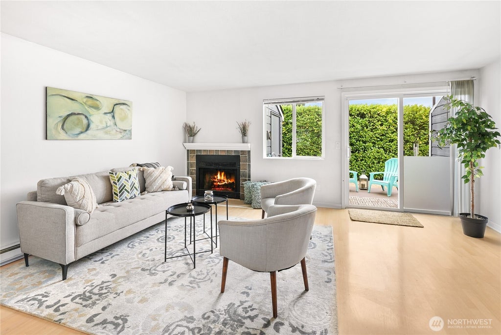 Charming 2Bd, 1.5 bath end unit, 978 sqft in private complex on 5th St., Heart of Downtown Snohomish. Features a large adjacent grass field and mature hedges providing added privacy and outdoor space. This thoughtfully designed layout lives like a townhome and includes just 1 shared wall. Enjoy community amenities like a swimming pool, and proximity to schools, parks, and popular local spots. Walkable location enhances your lifestyle, allowing easy access to dining, shopping, and entertainment. A unique opportunity to embrace convenience and comfort in a vibrant, yet peaceful neighborhood setting.