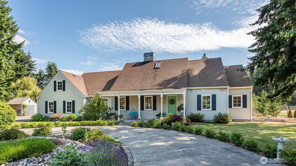 Nestled on a serene 1.26-acre lot on a quiet dead-end street, this lovely 3 bdrm, 2.5 bath home offers both elegance and functionality. The main level features a formal living & dining room, a cozy family room, & a private office along with a well-appointed primary suite. The sunroom & solarium offer an additional 369sf of living space. Upstairs, two bedrooms and a full bath provide ample room for guests. The home boasts beautiful solid oak floors, custom cherry cabinets, a circular driveway and an oversized 3-car garage. Enjoy the convenience of being close to town, while the property itself offers the peaceful charm of fruit trees, flowers and a tranquil, private setting. This home is a true gem!