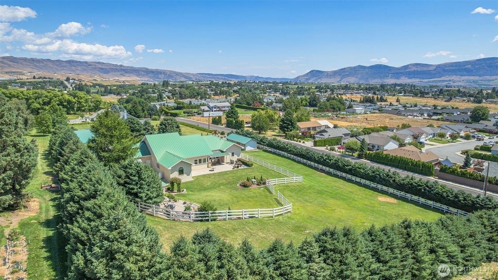 Looking for Space & Privacy? This immaculate single-story home offers the perfect blend of comfort, functionality & space all nestled on tree lined 1.64 irrigated acres w/ sprinkler system on irrigation & fabulous panoramic views! 4 Bedrooms + Office. Thoughtful separation between living & bedrooms. 30 feet deep 3-Car Garage, RV Parking, HUGE heated & insulated Shop & Barn. Fruit Trees, Garden Space & Greenhouse – Perfect for gardeners & those seeking a self-sustaining lifestyle. Covered patio for enjoying peaceful sunsets. This property has been lovingly cared for & designed for both practicality & relaxation. Whether you're looking for multi-functional space, quiet country living w/ city access or mini hobby farm, this is IT!