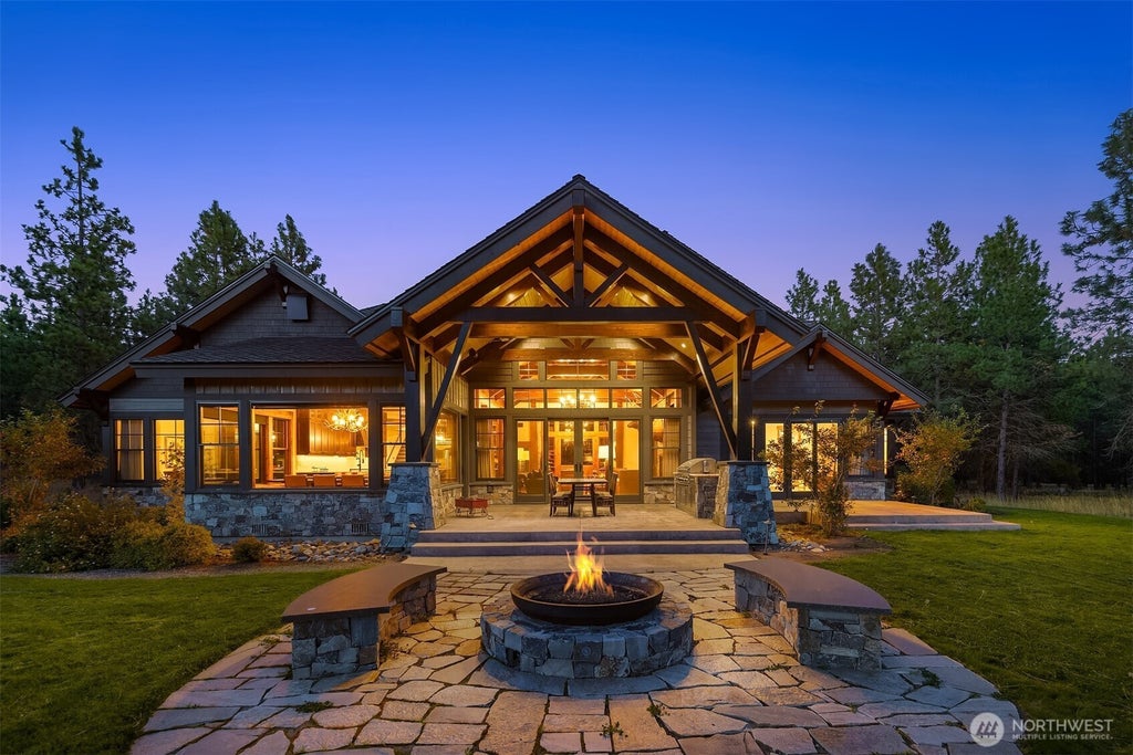 Truly exceptional Tumble Creek estate on nearly 1-acre along Tom Doak Golf Course. Soaring cedar planked cathedral ceilings w/ rustic chandeliers. Custom built-ins, stone accents & wood Anderson windows throughout. Open plan great rm w/ oversized gas fireplace. Covered terrace w/ BBQ & firepit. Gourmet kitchen boasts 48" Wolf, 48" Subzero, walk-in pantry, 1,000 bottle cellar w/ sapele racking. Main level Primary Wing w/ gas fireplace, sitting area, beam accents & slider to terrace. 5-Piece en-suite has heated flrs, vast WIC. 2nd Primary Suite on main. All beds generous. Den + rec-rm w/ wetbar & built-in media cabinet. 3-car garage w/ extensive storage & workbench. Dual Electrolux W&D. Generator. Automated lighting. Superior craftsmanship.