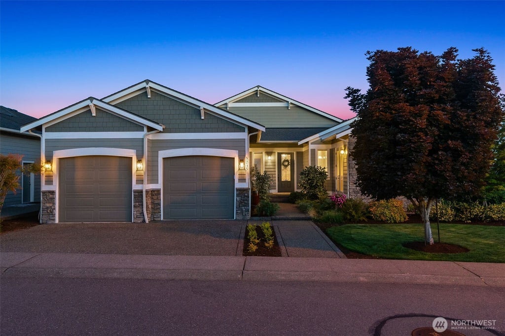 Spectacular VIEWS steal the show in this stunning PNW beauty, with sweeping vistas of Mt Rainier, the Black Hills, even Mt St Helens from nearly every room! Soaring ceilings & walls of windows on both levels! Main: Spacious great room w/gas FP flows to formal dining & chef’s kitchen w/granite counters, SS appls, eat-in island & breakfast nook. Step out to the Trex deck to savor coffee at sunrise. Peaceful primary suite boasts dreamy 5-pc bath: dual vanities, soaking tub, tile shower & WIC. A 2nd BR/home office offers private entry through French doors. Downstairs boasts 2 add’l BRs, a 3rd bath, a massive rec room, a media room AND a 2nd Trex deck! Game nights, movie nights & summer BBQs are calling! The best part of your day? Coming home!