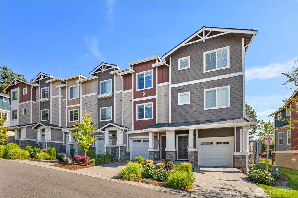 Modern townhome in the gated community of Sunridge! This stunning property is like-new and features an open-concept floor plan & bright living spaces. Generous living/dining areas offer a comfortable lifestyle & ease of entertaining. Well-appointed chef’s kitchen with soft-close espresso cabinets, quartz countertops, SS appliances & walk-in pantry. Upstairs, a spacious primary suite with double vanity & walk-in closet. Secondary guest suite with full bathroom. Convenient top-floor laundry. Truly private covered back patio & main-floor deck overlooks lush greenery for a natural outdoor extension of the home. 2-car tandem garage with EV charger. Pristine community and prime location near shopping, restaurants & freeway access. No rental cap!