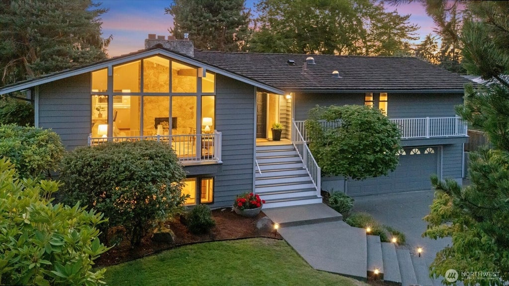 The home you’ve been waiting for—an impeccably updated Mid-Century gem w/stunning mtn & sunset views! Vaulted ceilings, dramatic fireplaces & walls of windows create warm, light-filled interiors. Thoughtfully modernized inside & out, including updated systems & finishes. Designed for easy living & entertaining, the open layout flows to a generous deck & private backyard w/mature landscaping. Ensuite primary bdrm + 2 bdrms w/guest bath on main level. Versatile lower level offers ADU potential w/rec room, large bdrm, ¾ bath, & ample storage. Oversized garage plus expanded driveway. Ideally located in a quiet neighborhood close to parks, beaches, downtown Edmonds, shopping & light rail. Popular Shoreline schools. Pre-inspected & sewer scoped.