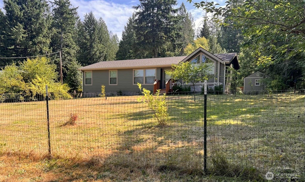 Charming Lake Devereaux Retreat – Room to Live, Play & Grow! Discover the perfect blend of comfort, charm, and opportunity with this 2-bedroom, plus den, 1.75-bath home nestled on over half an acre in the peaceful Lake Devereaux community. Just a short walk to the serene lakefront where plenty of fishing and activities await. Enjoy a fully fenced yard with a gated driveway, mature fruit trees, garden space, a greenhouse, and a covered patio for year-round enjoyment. Also a 20X20 garage with a wood stove that adds convenience and storage. The 12x24 shed has great potential—convert it into a workshop, or studio or more! Whether you're looking for a full-time residence, or a weekend escape.