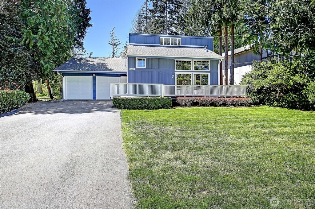 This charming home offers an open floor plan with bamboo flooring, natural gas and large windows to showcase the beautiful views. Efficient newer furnace and A/C, new black top driveway, expansive decks, gated boat launch and beach rights.This turn key home is on a shy 1/2 acre with no HOA. The attached 4 car garage (22x40) includes a loft with 220 amp power. All living is on the main floor with the primary upstairs, walk-in closet and a guest room. You'll love the kitchen, living area with a gas stove for chilly mornings. The backyard is totally fenced, huge deck and it has 2 storage sheds on level land. This home is clean with beautiful views & a great location, easy access to I-5, schools & shopping. Turn key, ready to move in today.