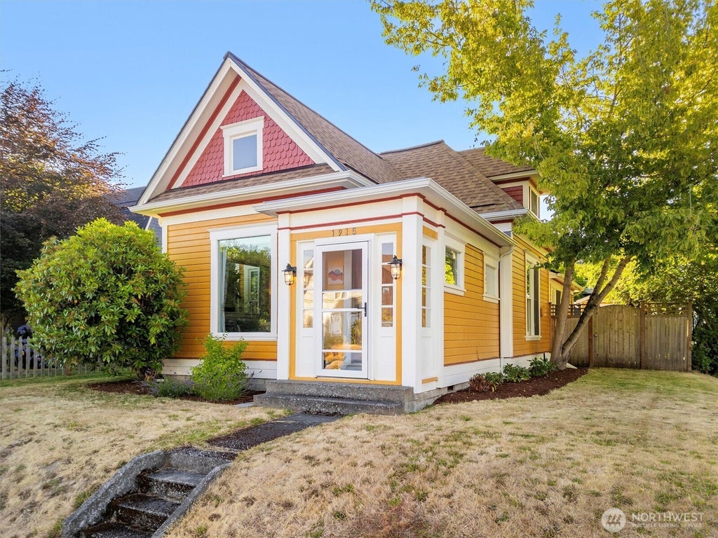 Craftsman-style home blends vintage charm with modern upgrades throughout. The kitchen shines with quartz countertops, a refinished concrete & live wood island, new stainless sink, updated lighting, & fresh paint. The spacious primary bedroom features cedar tongue-and-groove ceiling, stained wood floors, & a step-in closet with custom shelving. Stylish bathroom remodel includes tile floors & walls, glass-door tub, new vanity, fixtures, & more. Living room bay window replaced in 2023. Exterior includes a partially fenced yard, fresh landscaping, patio space, & Tuff Shed with gutters (no power) —perfect for bikes, yard equipment & gear. Roof, gutters, water heater, and crawlspace all recently updated. Great walkability to downtown!