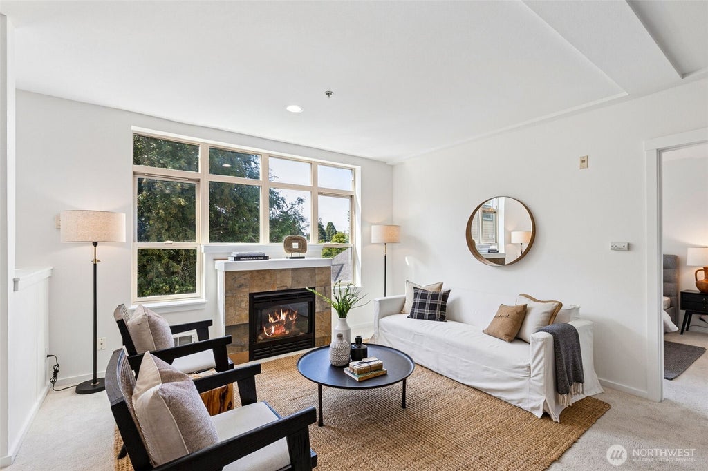 Completely adorable two bedroom, two bath, condominium home located in the North Seattle neighborhood of Northgate/Haller Lake. Fantastic location; close to NW/UW Hospital, Kraken Ice Complex, Movie Theaters, Shopping, Light Rail...and direct access to downtown Seattle. Recently painted interior is bright and welcoming! New counters in kitchen extend to eating bar and is convenient and cozy. Nice separation of rooms. Spacious and charming. Each bedroom has its own bath. Dining salon adjacent to petite balcony. Charming gas fireplace is welcoming in this fabulous home. New washer & dryer at entry closet. Convenient storage space in garage. Building is located at the end of a private road; light traffic only.