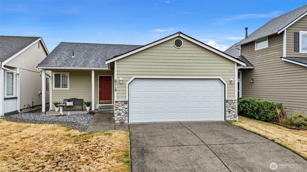 Welcome home to English Ridge! Don't miss this highly sought after 3 bedroom, 2 bath rambler! The primary bedroom has en suite bathroom with walk in closet; Home offers a spacious living room with gas fireplace and open to kitchen and dining area. Fully fenced back yard; Oversized garage has space for a small work area and ample storage. Close to shopping, community park and playground. Home has brand new composition roof just installed in July, 2025! Newer appliances; newer insulated garage door and keypad, AC and Heater installed in 2021, New hot water heater in 2025, Milgard windowpanes in 2018. This home is neat and clean and ready to move in and enjoy!