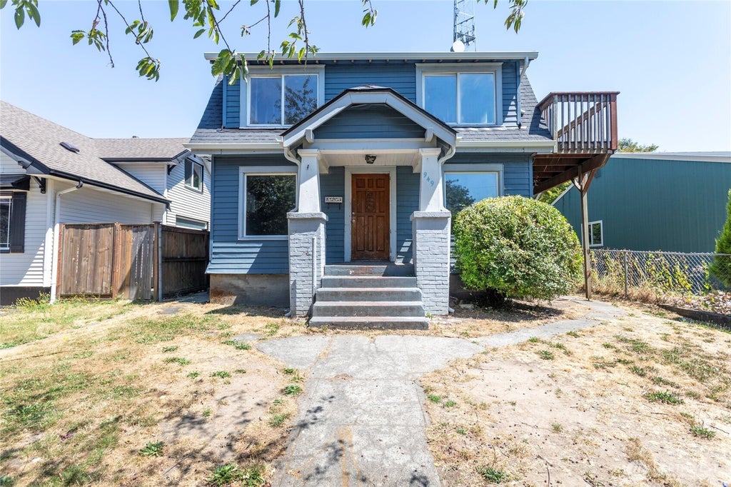 Investor delight with serious upside! This spacious home offers four bedrooms and a full bath upstairs, including deck access from the primary bedroom. A full bath and one bedroom are located on the main floor, along with a kitchen that's fully plumbed but currently gutted—ready for your vision. Big deck runs along the south side, and there's paved alley access with off-street parking. Full basement has ~7 ft ceilings, a utility sink with laundry hookups, and potential to finish—though some areas need attention. Wall heat, partial wood siding, and cool vintage details throughout. Bring your tools and imagination!