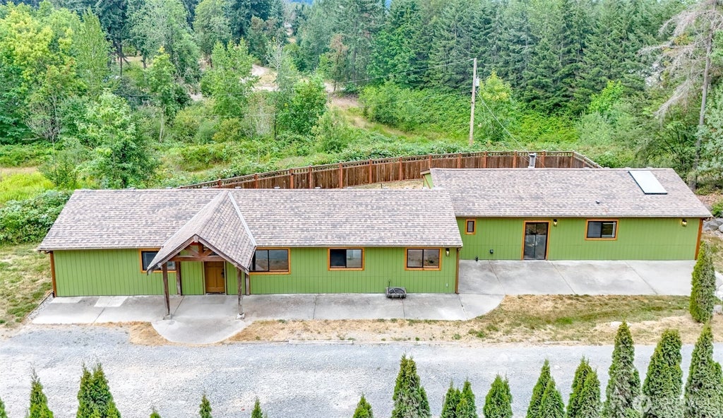 Spacious rambler w/cabin vibes on 5+ acres of peaceful scenery, a MEGA pole shop & just mins from downtown Eatonville. New & updated: roof, windows, exterior paint, new floors, barn doors, paint, trim, fixtures & more inside! Updated open concept kitchen w/stainless steel smart appliances, dining area w/wood stove, vaulted tongue & groove ceilings. Generous owners' suite, giant bonus/game room & office w/built-in workspace. More smart features: cabinet lighting, ceiling fans, outdoor lights, & automated garage door. 1500+ SF shop w/10 ft door, holds 6+ cars w/loft, built-in storage & work bench, camera, speakers, WiFi, water & 100 amp service. So much recreation here… from the giant patio & fire pit to your own carved out dirtbike track!