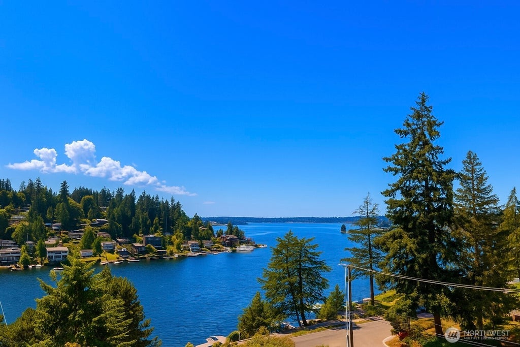 Sweeping views of Lake Washington captivate. A complete renovation offers all the modern amenities in this perfectly located boutique 2 BR / 2 Bathroom Bellevue top floor condo. Beautiful open concept kitchen, dining and living rooms offering views as far as the eye can see. Al Fresco dining on the view balcony. Two completely new bathrooms with generously scaled showers and new open kitchen with stainless appliances and quartzite countertops. Air conditioning, in unit ventless laundry plus community laundry room and tankless hot water tank. Two dedicated garage spaces, community pea patch and the best roof top deck in town!