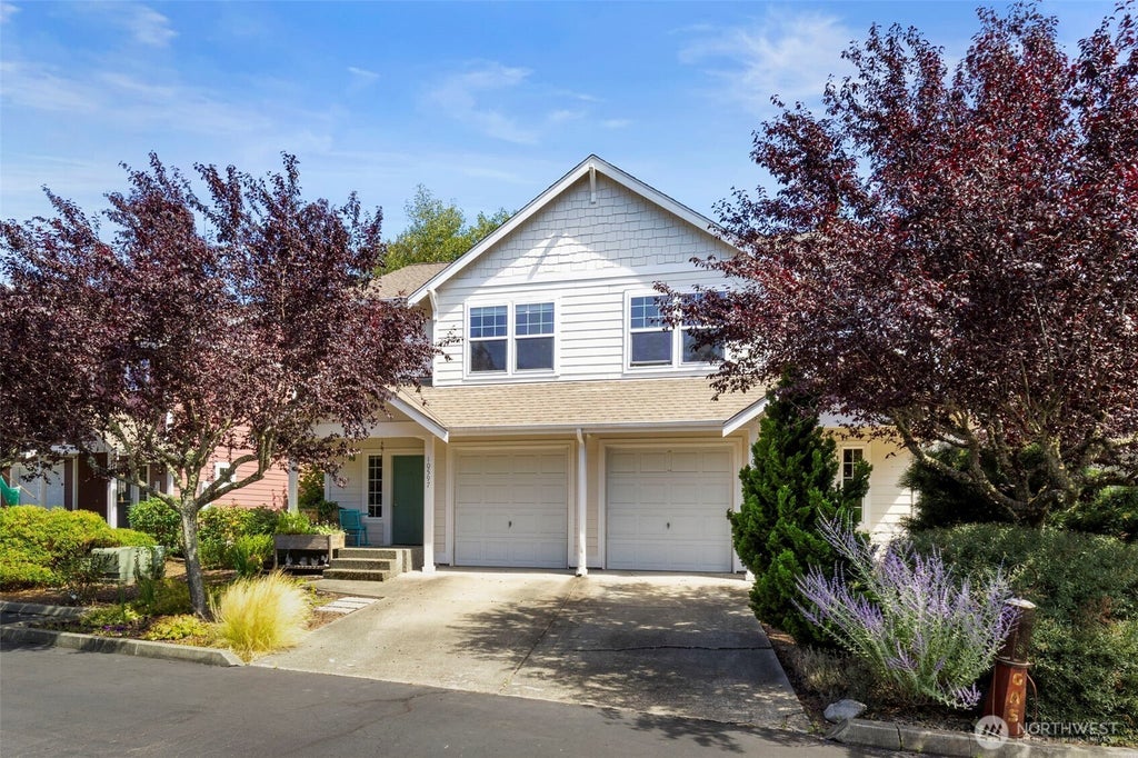 Charming 3-bed, 2.25 bath Kingston Meadows Townhouse! Just one mile to downtown Kingston and ferry terminal! Open & bright living room with fireplace and low maintenance vinyl plank flooring throughout main level. Kitchen features stainless steel appliances, propane stove and pantry. Additional ½ bath on main level. Upper-level primary bedroom with large walk-in closet and attached full bathroom. Plus, two additional guest bedrooms and ¾ bathroom. Covered front porch, private back patio next to the community greenbelt, and attached garage. Community HOA dues cover water, sewer, garbage, exterior & common area maintenance, including exterior paint and roof maintenance. Desirable location with easy access to dining, shopping and Ferries!