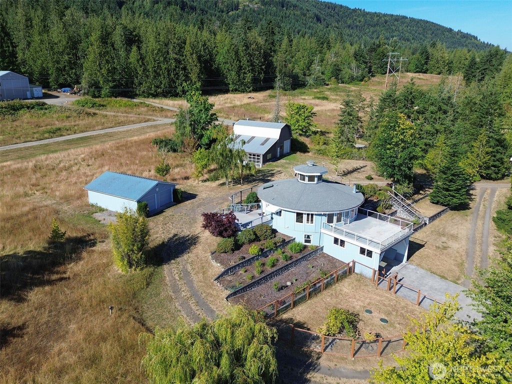 Check out this one of a kind, unique property in beautiful Happy Valley! 3 bedrooms, 2.5 baths, den/office, w/a detached garage, & a HUGE shop, all on 2.28 acres. This custom home's singular design is visually striking & offers excellent views of Happy Valley, Bell Hill, & a direct line of site to Victoria & the Strait of Juan De Fuca. 3 different view decks, one of which is gigantic! The main floor has the kitchen, laundry, vaulted living area, & the primary bedroom & bath, as well as a spiral staircase "crows nest". Daylight basement w/ 2 bedrooms, 2.5 baths, a den/office & a large living area & attached carport. Multiple terraced & fenced garden areas all with mature landscaping, heirloom roses, figs, apples, cherries, plums, & berries.