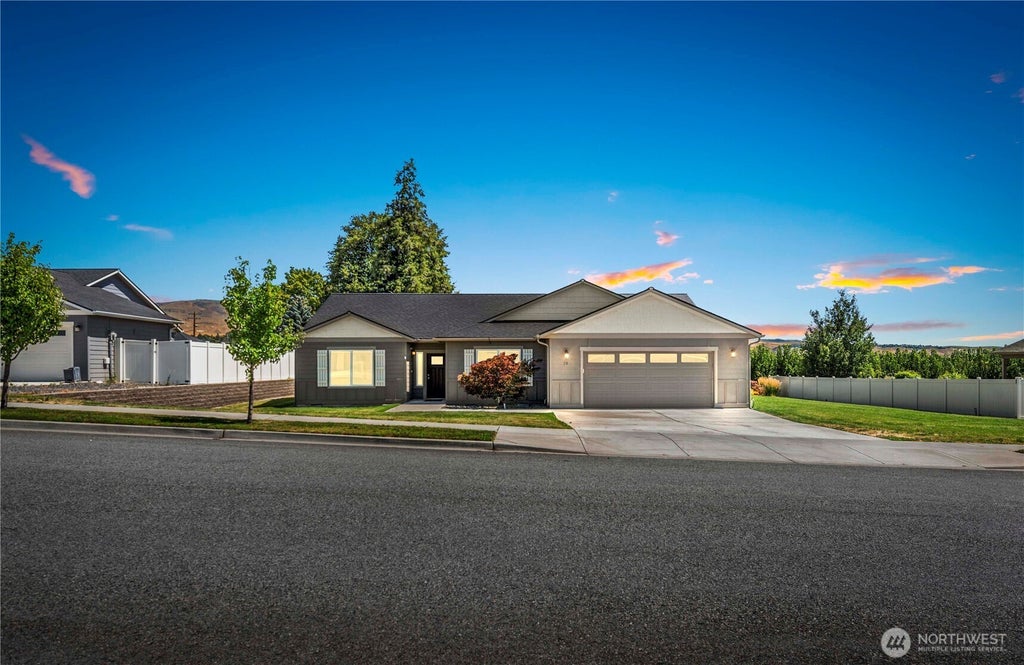 Step into this inviting 2,078 sq. ft. single-level haven, nestled on a generous .36-acre lot with irrigation water. 3 bedrooms plus a versatile office/den- ideal for work or relaxation. Unwind in the expansive, vaulted great room, bathed in natural light, with access to a covered back patio- perfect for morning coffee or evening gatherings. The open kitchen boasts a granite island, pantry closet, & wood laminate flooring that adds warmth throughout. Retreat to the vaulted primary bedroom, complete with a spacious walk-in closet, additional closet, & private bathroom featuring a double sink vanity, relaxing soaking tub, & stunning tile/glass shower. The laundry room includes extra flex space. This home blends comfort, style, & functionality!