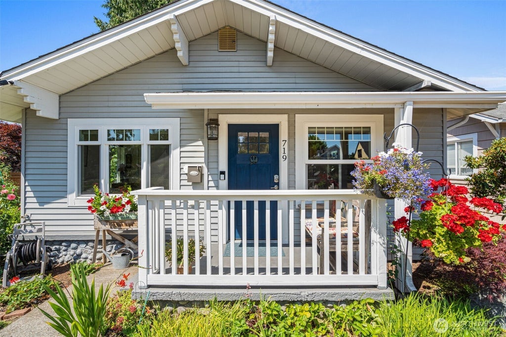 Located in the heart of the Edison District, this picturesque charmer blends modern updates with classic style. Features include durable vinyl siding, hardwood and ceramic tile floors, quartz countertops, Milgard windows, SS kitchen appliances, and a cozy gas fireplace. Stay comfortable year-round with forced air heating and A/C. Thoughtful touches include stackable w/d, laundry sink, cedar-lined closets, a covered porch, and an oversized garage with over 570 sq ft of space. Alley access provides RV/extra parking, and the partially fenced yard offers garden space and a cozy backyard with fire pit—all in a no flood zone location!